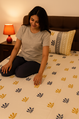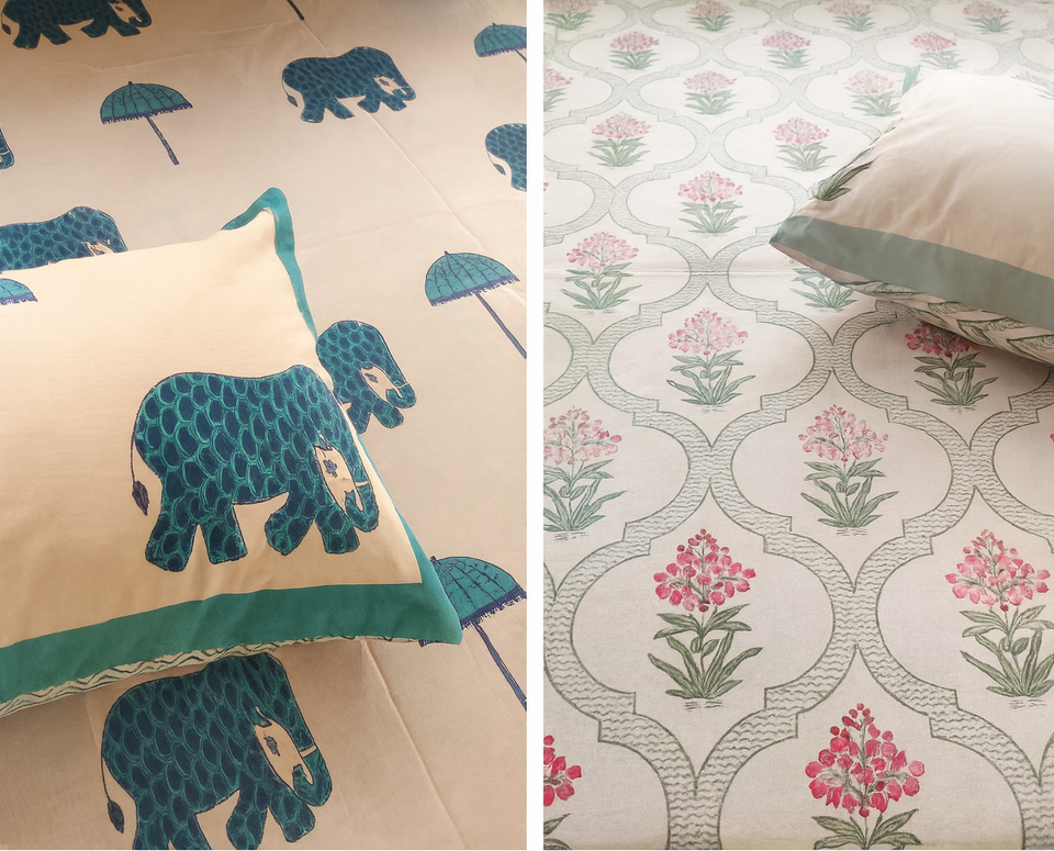 Every bedsheet and textile at Simmi’s Emporium carries the touch of human hands block printed the traditional way, with time, care, and devotion. No shortcuts. No digital screens. Just skilled artisans pressing carved wooden blocks, one motif at a time, to bring patterns to life. Each piece supports artisan families across India, preserving a centuries-old craft. More than just fabric it's a story of patience, culture, and soul woven into every thread.