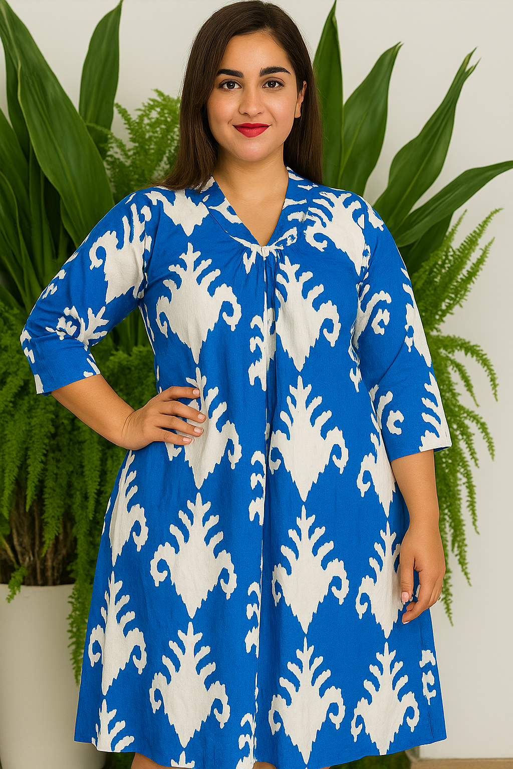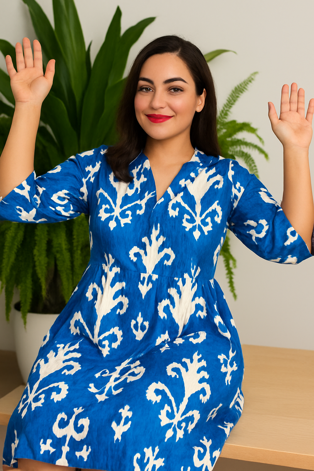 Ocean Whisper Tropical Pure Cotton Dress – Handcrafted Breezy Summer Dress in Soothing Blue Hues