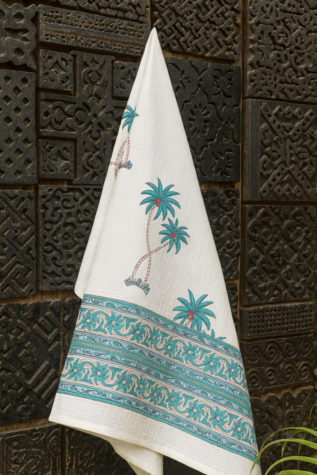 Designed for both beauty and absorbency, our Hand Block Printed Cotton Waffle Towel is a true testament to artisanal quality.