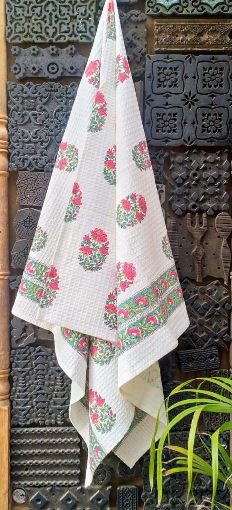 Designed for both beauty and absorbency, our Hand Block Printed Cotton Waffle Towel is a true testament to artisanal quality.