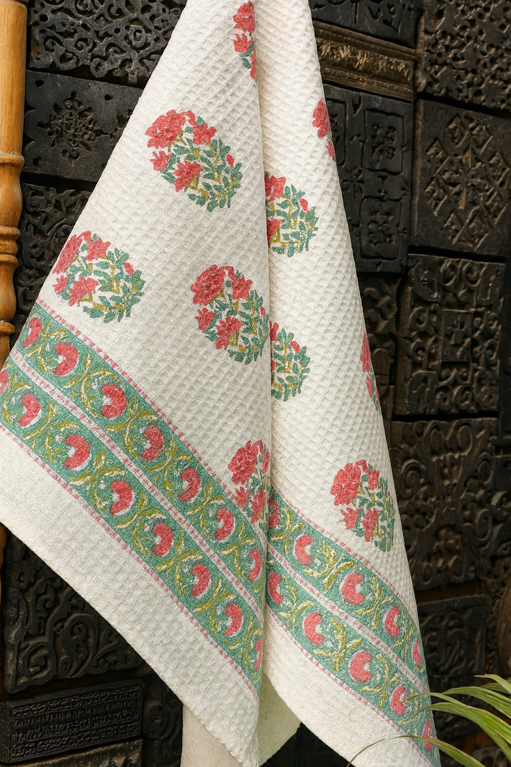 < > Mughal Garden Bloom Hand Block Print Pure Cotton Towel – Simmi`s Emporium