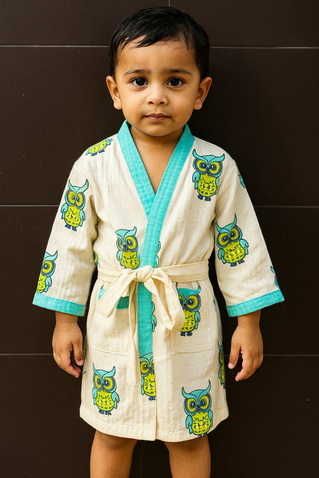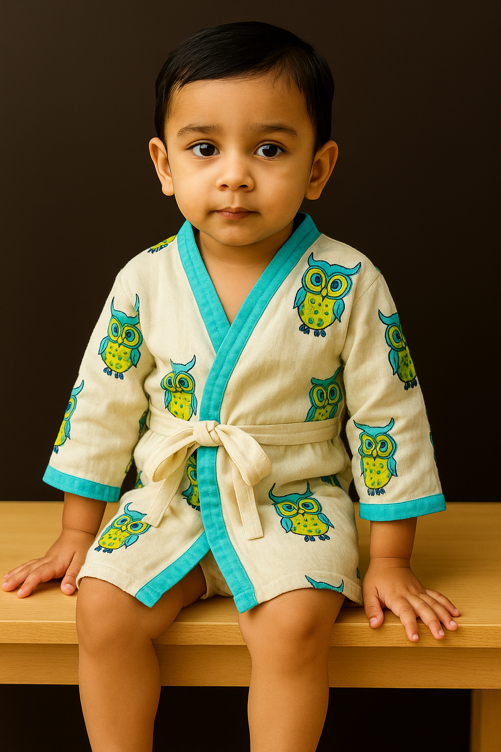 Make every bath time and bedtime warm, fun, and full of giggles with our “Hoot & Hug” Cotton Bathrobe — a delightful blend of playful charm and everyday comfort for your little one.