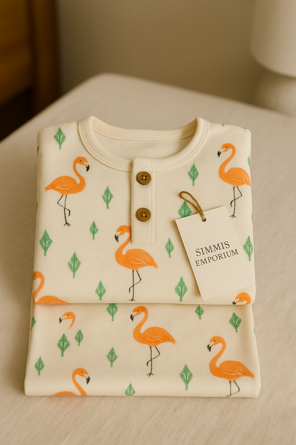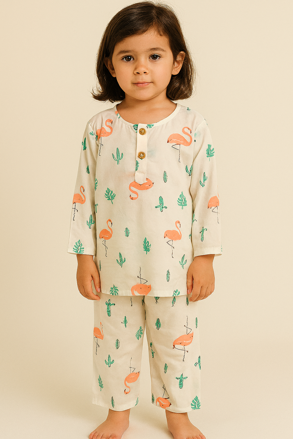 Simmi’s Emporium Tropical Dreams Kids Night Suit – Hand Block Printed Cotton Sleepwear with Flamingo Design