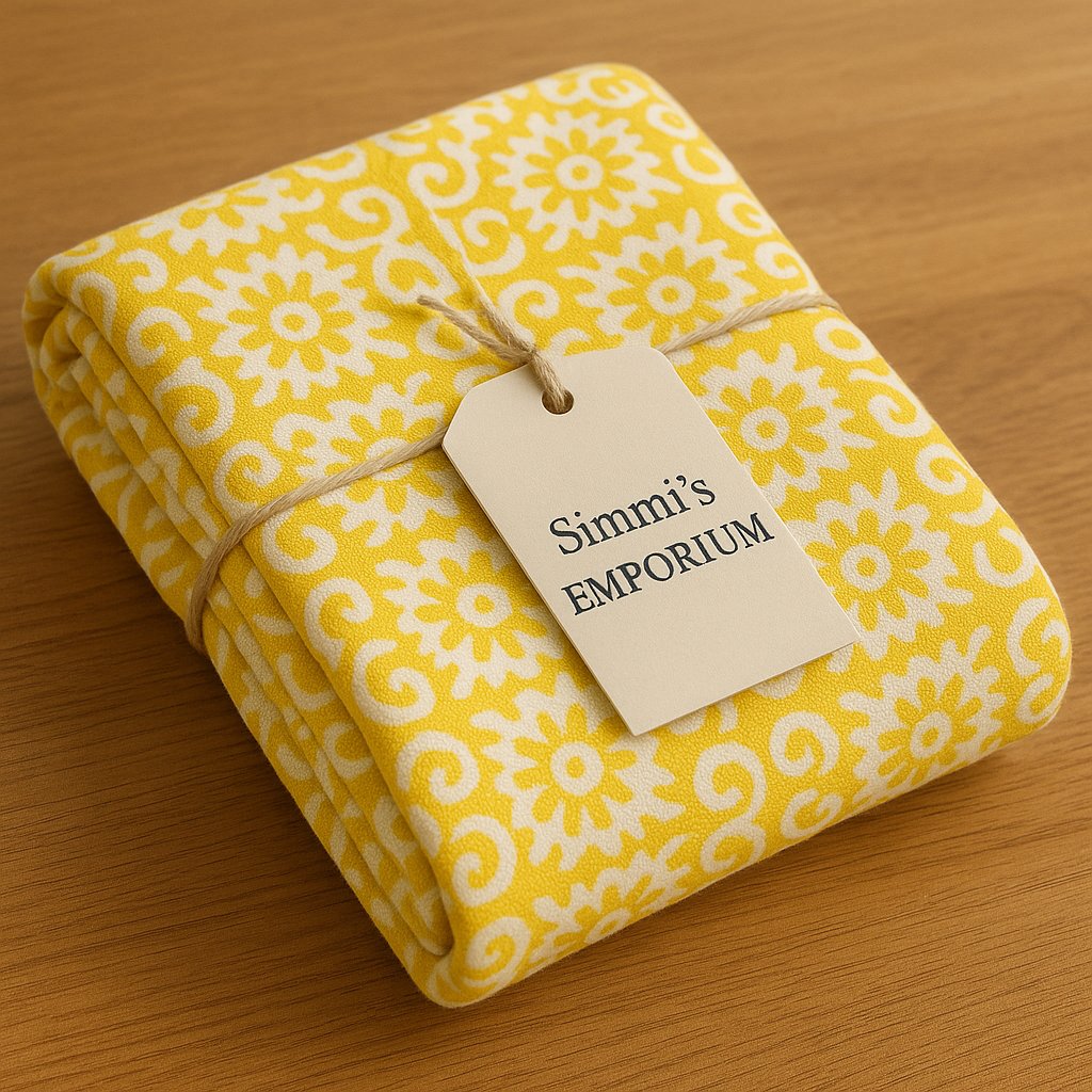 Brighten your dining space with the cheerful elegance of our Hand Block Printed Sunshine Medallion Table Cover. This delightful tablecloth features a captivating all-over pattern of intricate floral motifs and radiating medallions, reminiscent of classic folk artistry. The vibrant yellow and crisp white combination creates a fresh and inviting ambiance, perfect for any season.