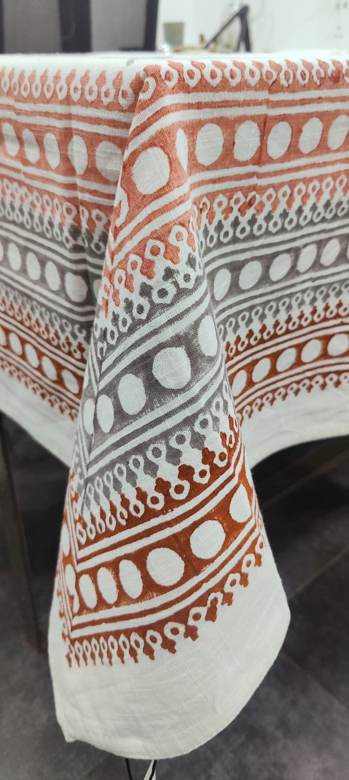 Bring the vibrant heritage of the Himalayas to your home with our exquisite Hand Block Printed Aipan Art Table Cover.